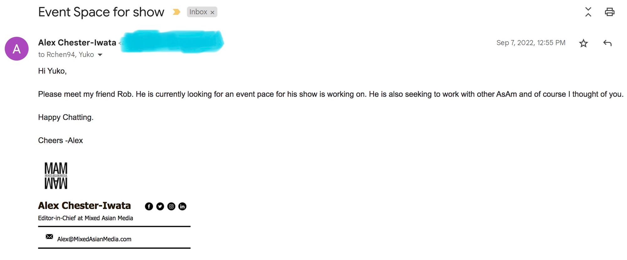 I had reached out to a fellow actor friend and founder of Mixed Asian Media, Alex Chester-Iwata, who was kind enough to connect meet with Yuko Kudo, an artist and member of Prime Produce, a community based co-op space that supports entrepreneurs, educators, and artists who share values of service and hospitality.